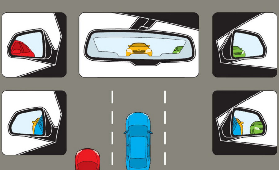Khi xe phía sau vượt lên từ bên trái, hình ảnh của họ sẽ di chuyển từ gương chiếu hậu giữa ra gương bên trái. Với cách chỉnh này, ngay khi xe họ biến mất khỏi gương giữa, họ sẽ xuất hiện ngay lập tức trong gương trái. Không có độ trễ, không có khoảng tối.